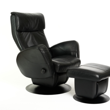2 schicke Ledersessel mit Hocker in camelfarbigen Leder